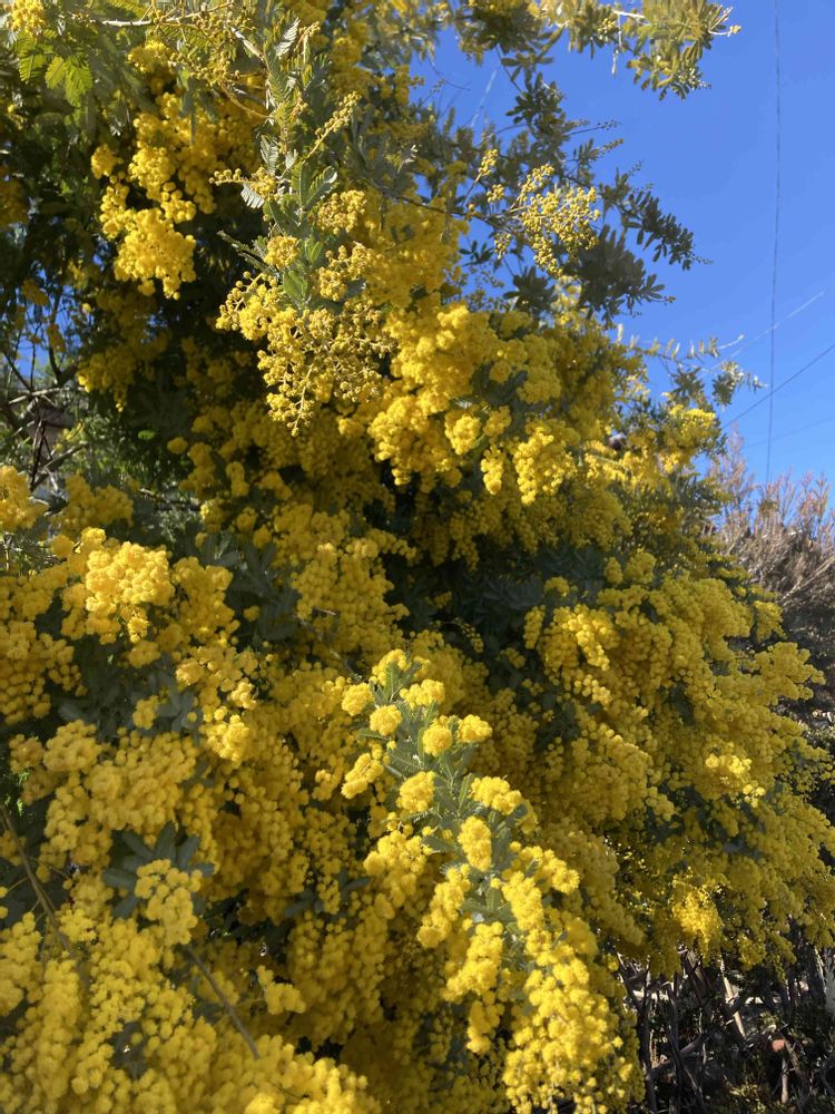 青空🟦にミモザ🟡映えて、とってもキレイ✨ですね。最高⤴️o(*⌒―⌒*)o