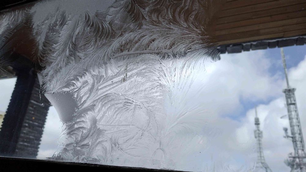 山頂の王ケ頭ホテルのビーフシチューはサイコ〜です。ホテルの窓ガラスは氷点下10℃ならではの氷のアート。
