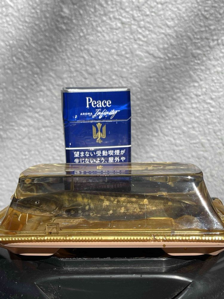 ➍ 気にかけてくださるフォロワーさんもいるので、元旦投稿以来ですがナマズ君の元気な姿を投稿しま~す❣️ 近頃の食品容器の嵌合具合は素晴らしいですね👀⁉️スーパーでお惣菜とか入ってる容器なんですが水入れて起こしても全然漏れなかったんです🤯‼︎ ナマズ君よく見えるでしょう⁉︎ また例によって大きさの目安代わりにタバコのパッケージも並べてみました😅