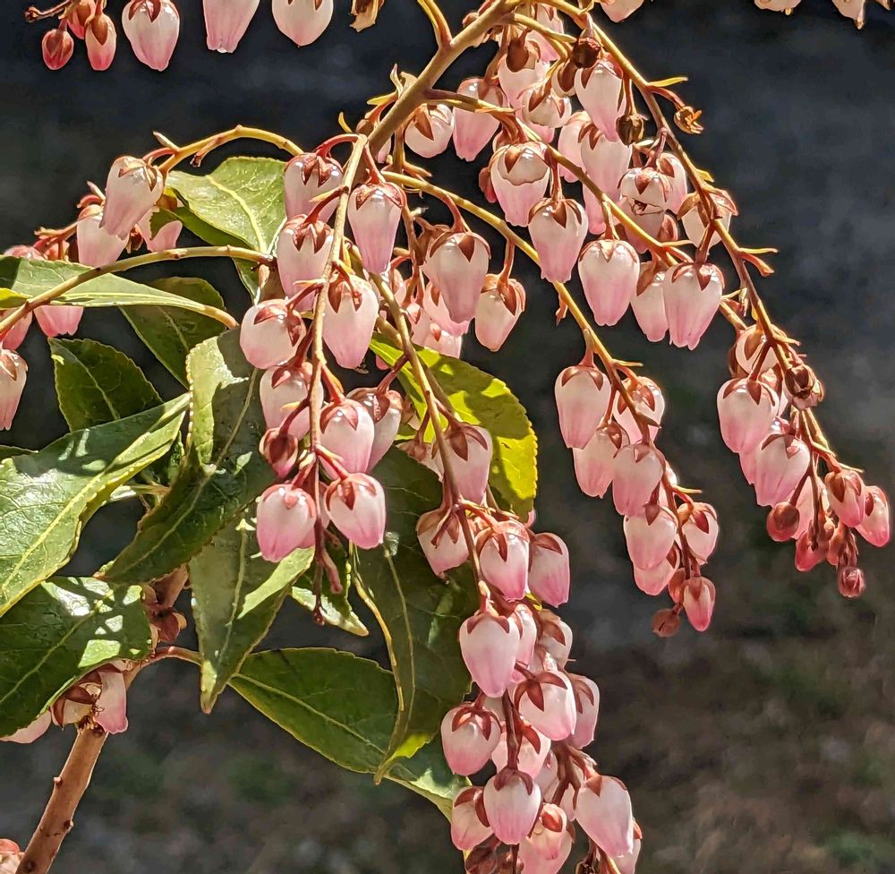 ④赤花アセビ ムスカリに似たスズランの様な形の花です