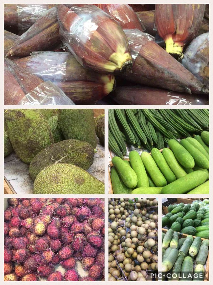 クロバーさんがupされたpicのフルーツ、🥒🍅🥔野菜は殆ど食べたことあります😄タイ、マレーシアです。