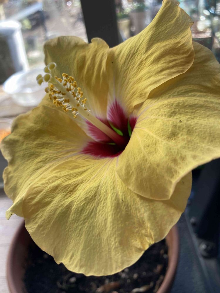 冬越しのために室内に入れていたら咲いていました。いいのかなぁ。