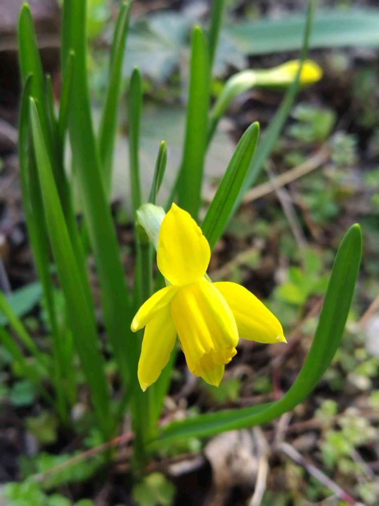 アレ?と思って鉢植えをどかしてみたら、隠れていた場所でミニ水仙が咲いていました❇️💛❇️