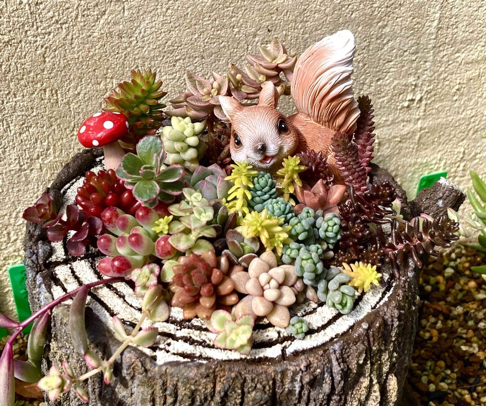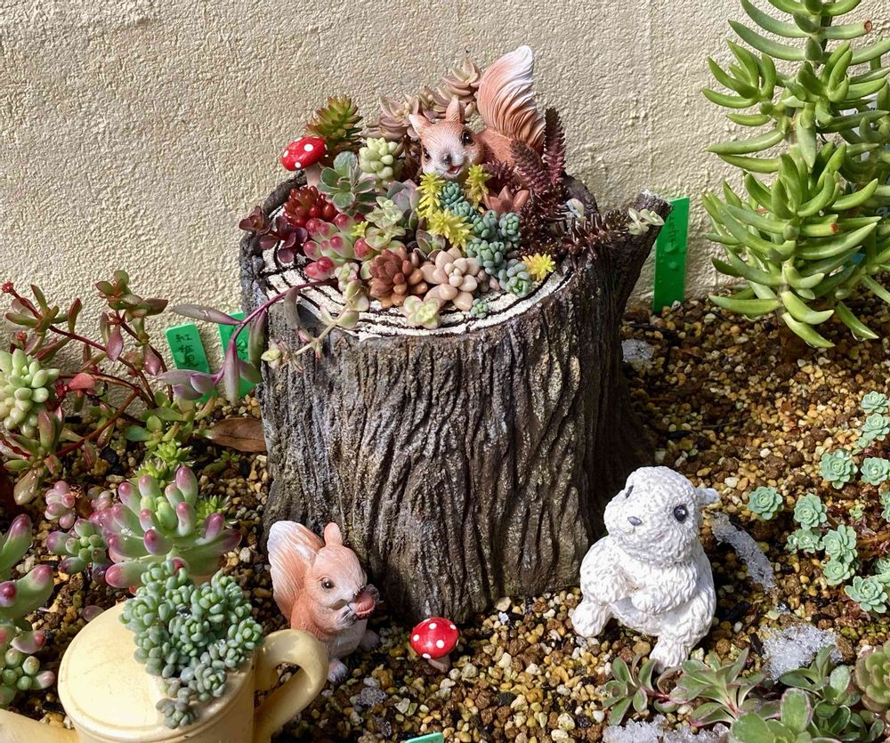 多肉とリスはよく似合う…と思います。うちはリスとうさぎのフィギュアだらけです。