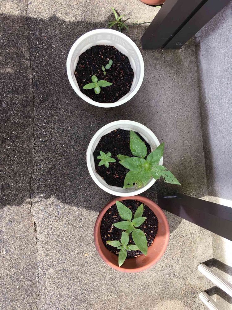 ミニヒマワリ🌻葉が増えてきた。後で蒔いた種も芽が出てきた🌱