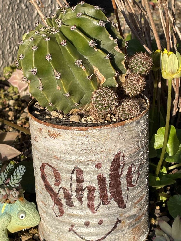 コレはですね、近所のおばちゃんがこうやって植えて缶ごとくれまして、トゲが痛いので、そのままです( ̄▽ ̄;)