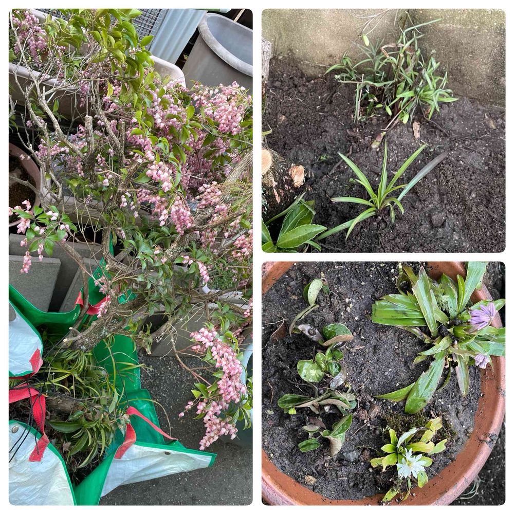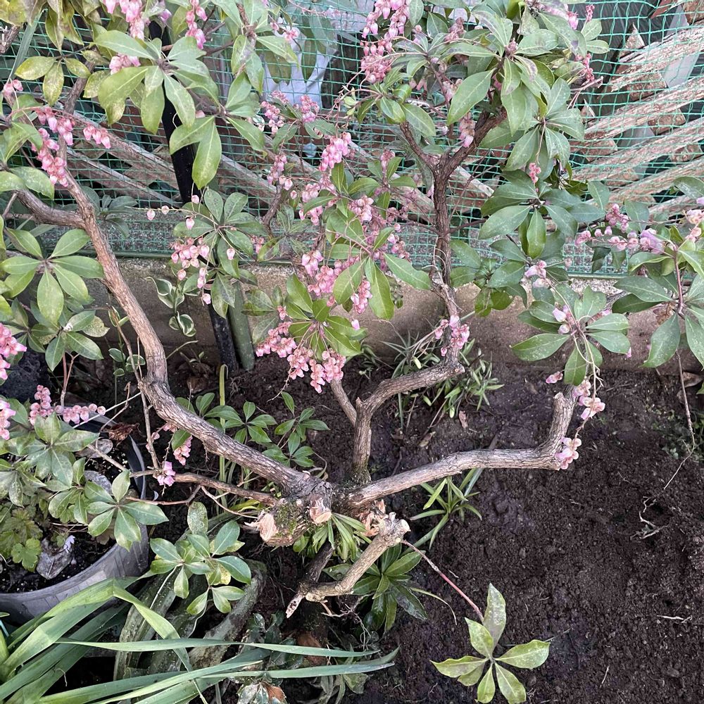 ①左.花真盛りのアセビですが、切ってしまうとの事でダメ元で掘り上げました。