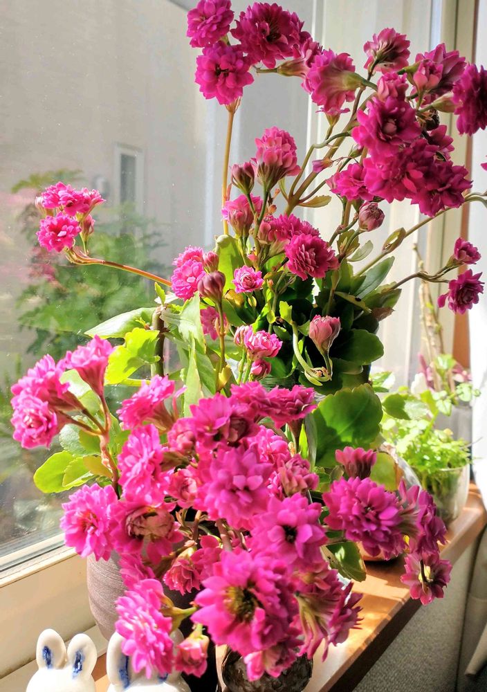 カランコエ、去年は、とっても形よく満開になったんだけど〜🙆🏻 カットして、カタチ整える、のが難しいわね🤣 だら〜っと、間伸びして〜 オールカットして咲かせたわ