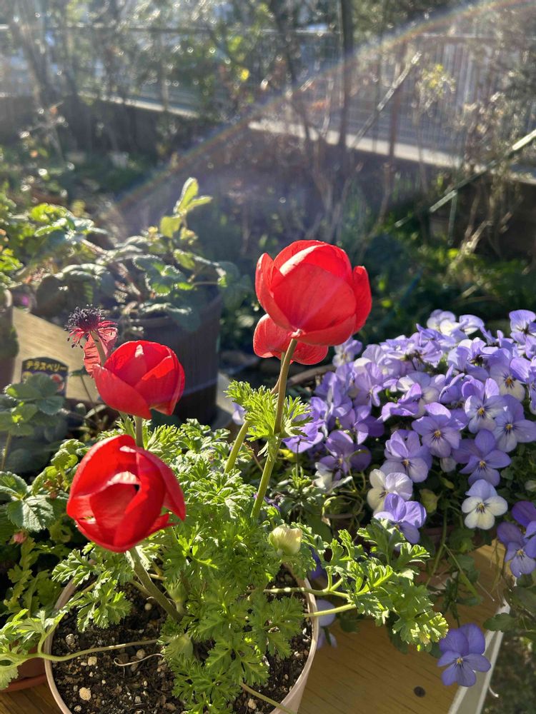 このアネモネたちを、軒下の台の上に移しました