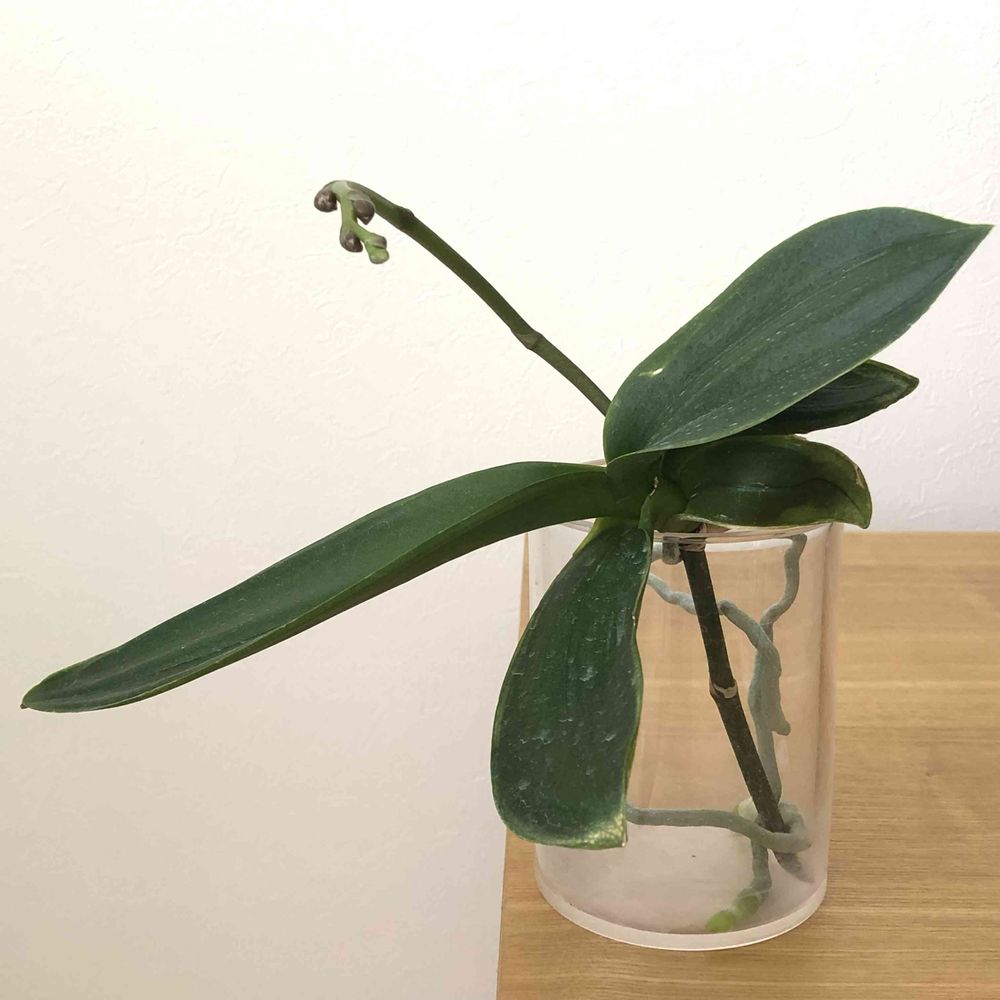 大輪胡蝶蘭は花茎40センチ超えたため誘引