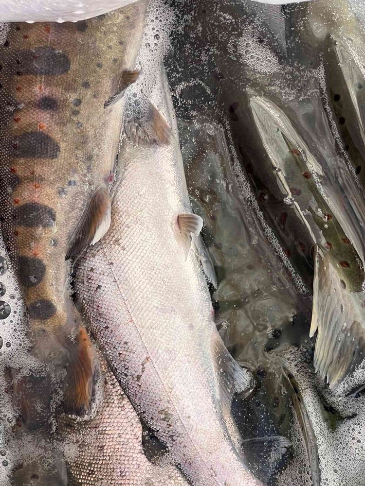 ひみつのアッコちゃんさんのお出かけ先,足柄ふれあい公園と鮎沢川,鮎沢川に放流される あまごの投稿画像
