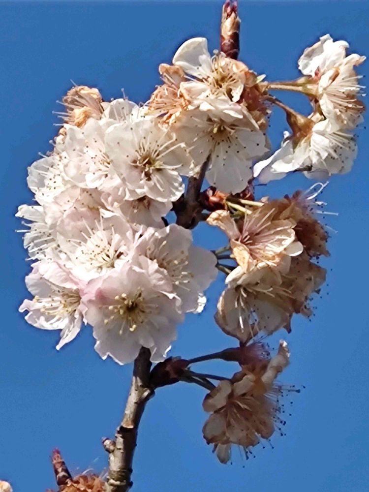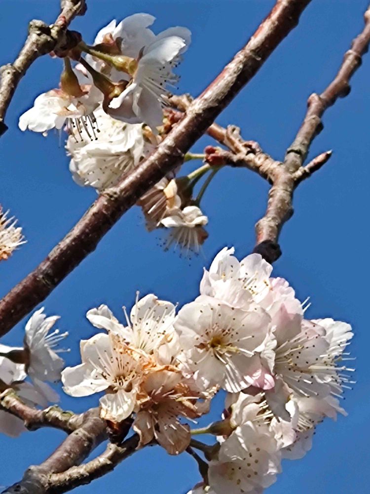 さくらんぼ🍒甘いのですが、お店で売ってるような佐藤錦などと比べると、暖地桜桃は粒が小さいのです。でも、花だけでなく青空の下で赤い実がなっている様子はとても可愛いです❣️