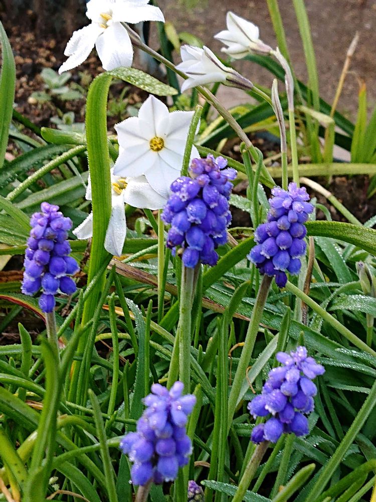 ④ムスカリとハナニラ🎵球根コーナーの子たちです😊