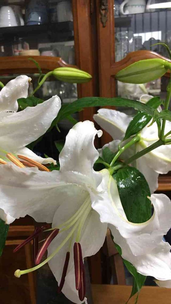大雨の中お庭で耐えてたカサブランカキッチンへお連れしました(*´∇`*)