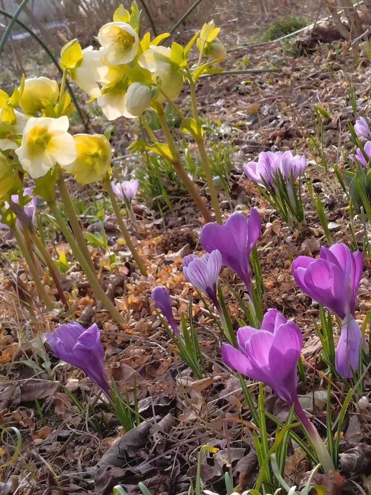 クリスマスローズのまわりに クロッカスが いつぱい …