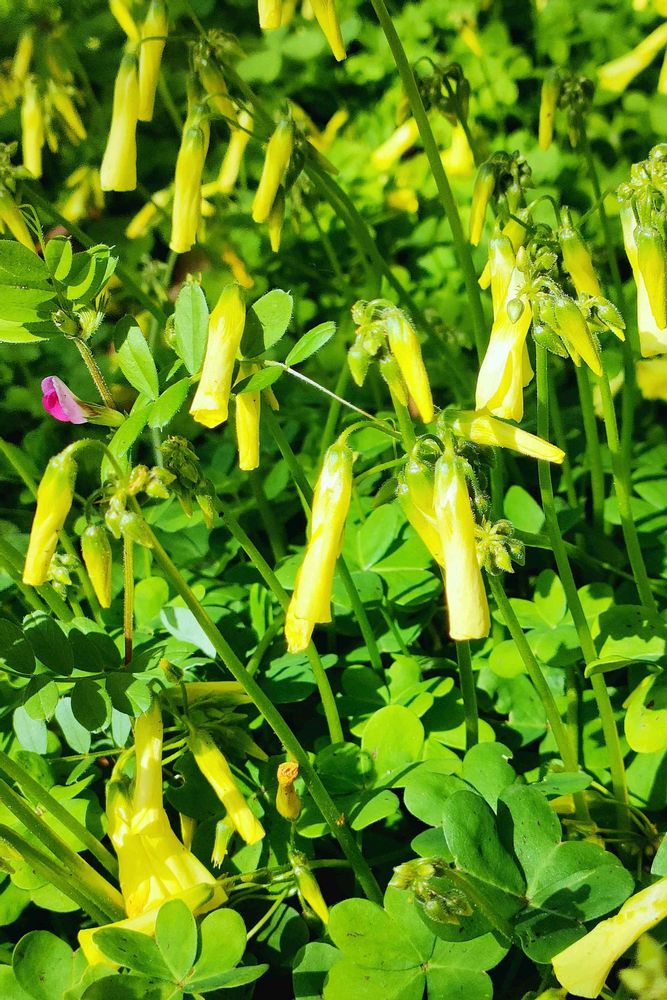 さっきまで曇っていたので花は閉じたままのオオキバナカタバミ✨