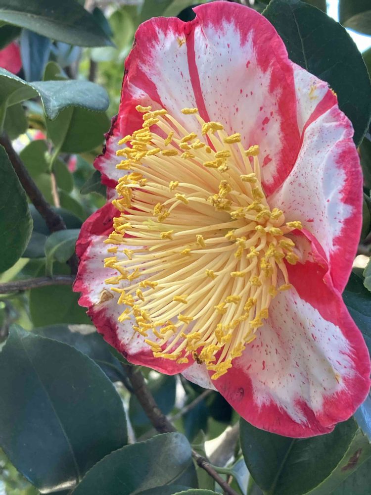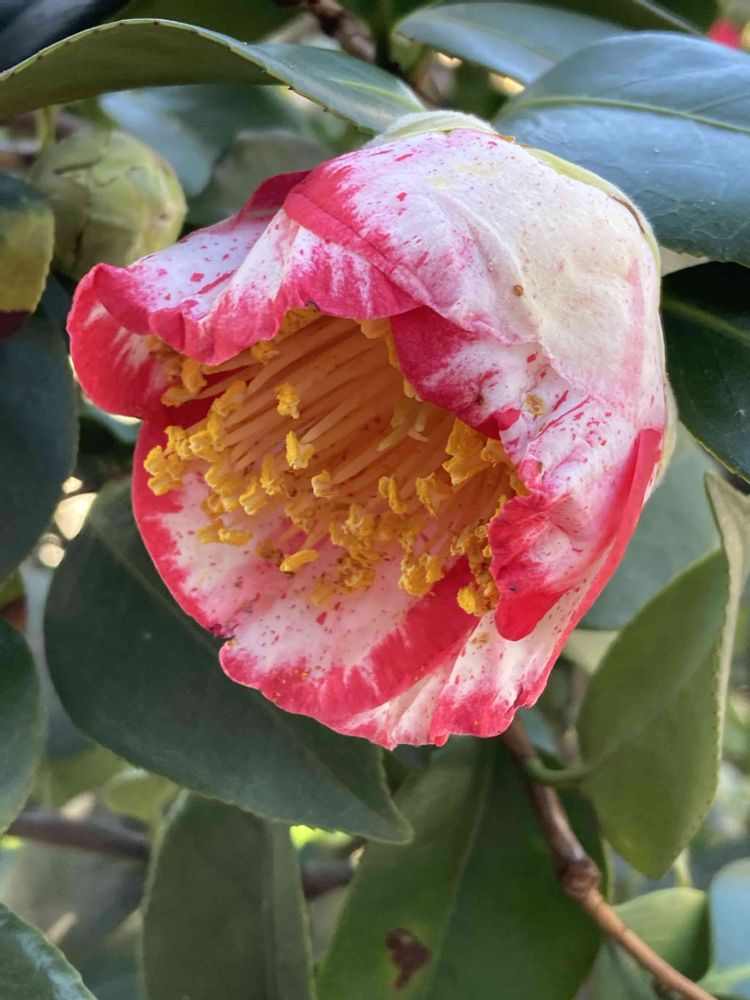 上野公園内にある五條天神社で咲いてた【絞りの椿】〜品種名が全く分かりませんが…