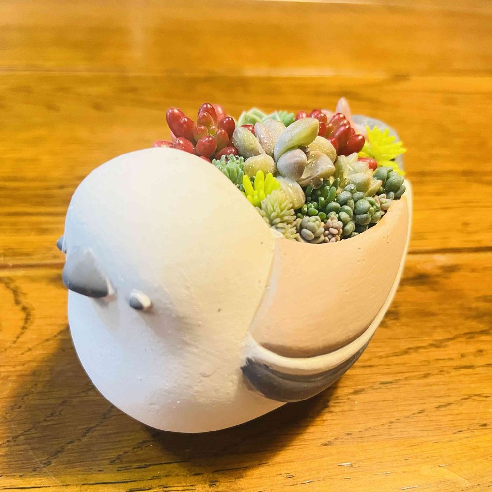 先日手に入れたシマエナガさんの鉢に寄せ植えをしました🕊️✨