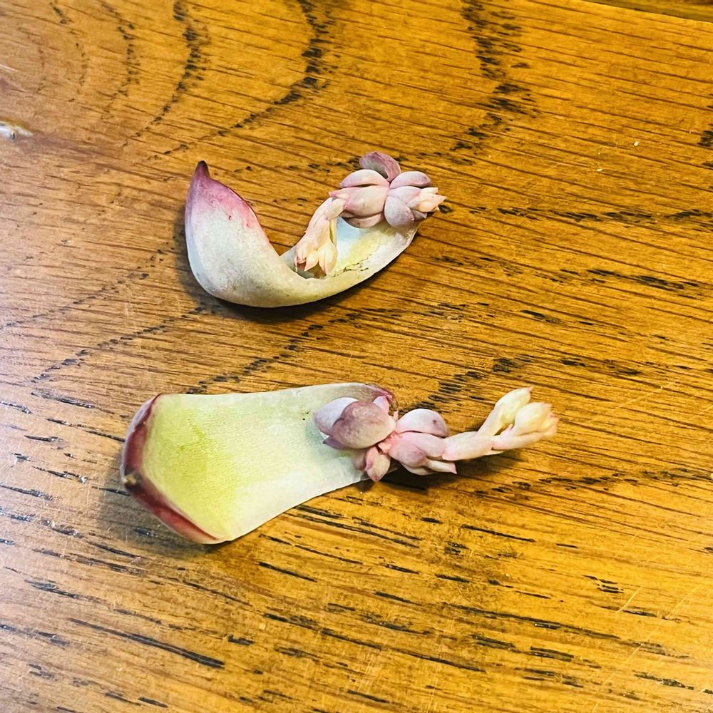 手のひらに乗るようなサイズ感なので、葉挿しから育った小さな苗たちを入れていたら、まさかの葉挿しから花芽が出ているものを発見😅