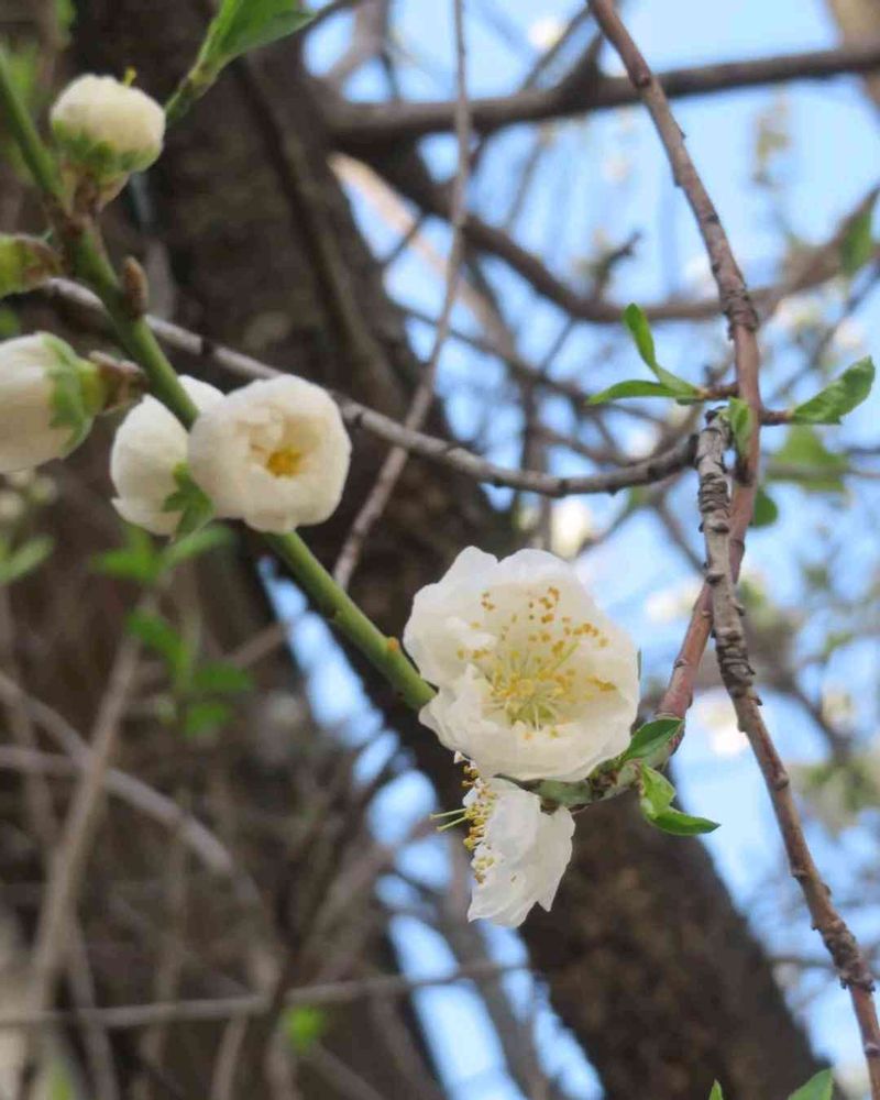 桃の花🌸ピンク🩷が多いですけど、白いんですね。そして萼が緑🟢爽やかに見えます。