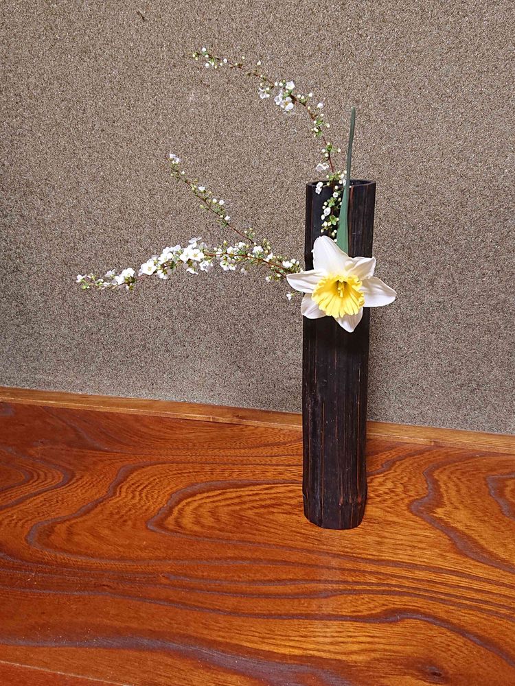 庭に咲いた水仙と、少し前にお迎えした雪柳を床の間に飾りました。