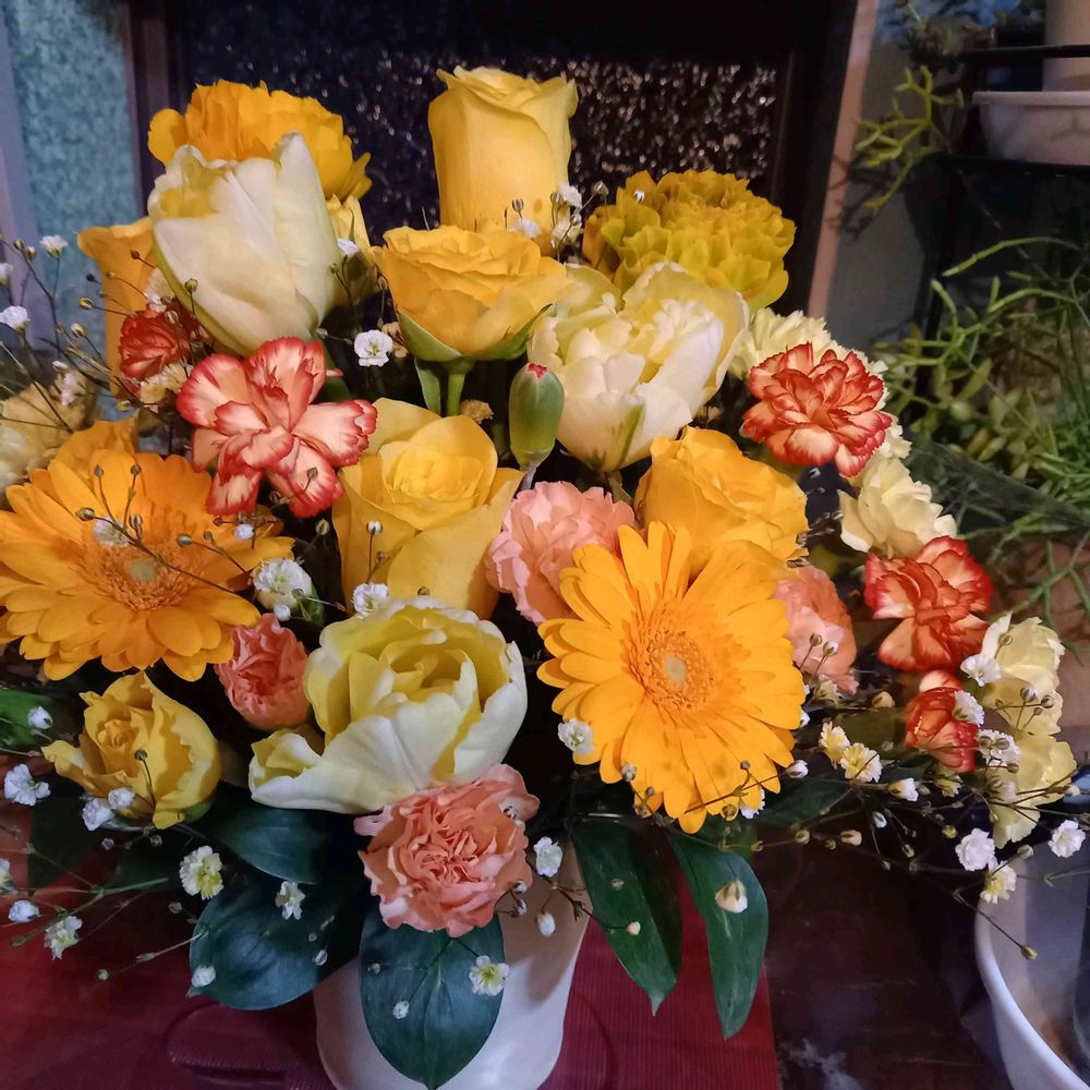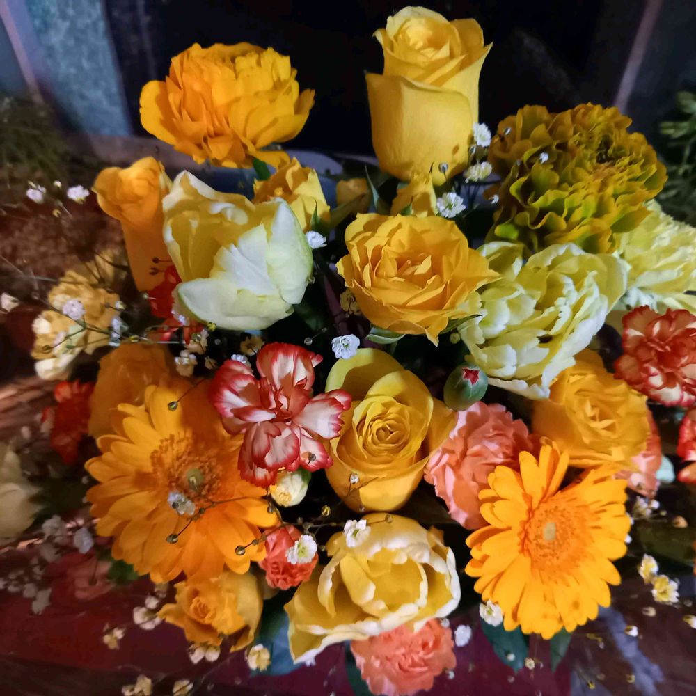 ありがとうございます。母に届けたら、とっても喜んでいました。元気のでるビタミンカラーでとお願いしたので🎵花は良いですね。
