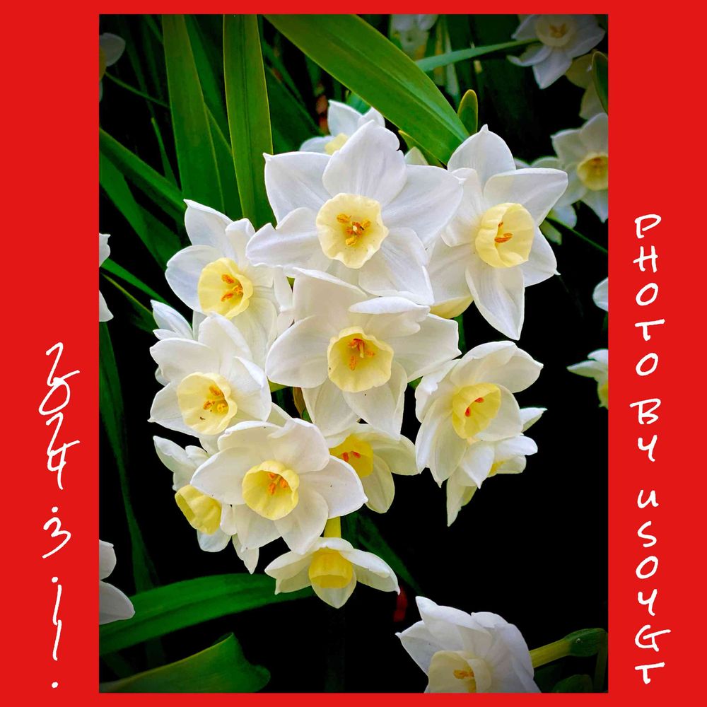 テーマ「花言葉」…我が家の小さなお庭…白い水仙…「尊敬」です🤗