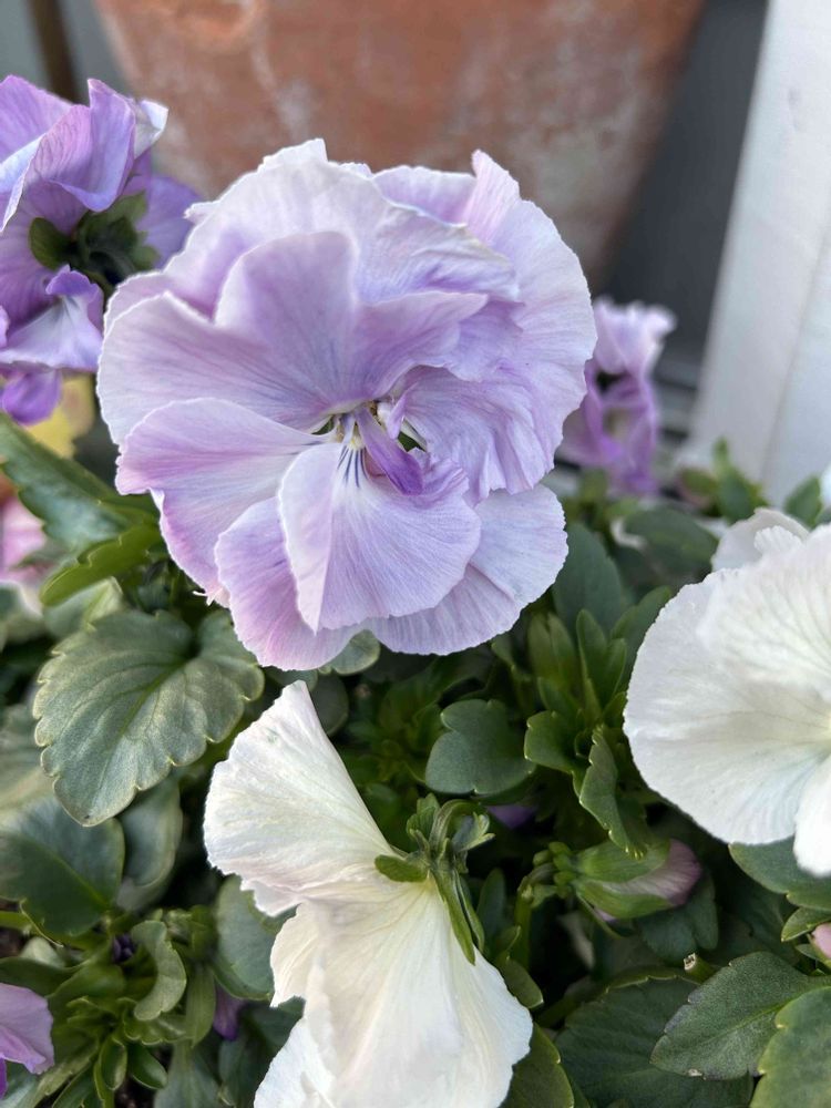 花絵本とたぐに書いてあったパンジー💜真ん中がくるんっとなっていて、かわいい😍色んな種類のパンジーがありますね❣️
