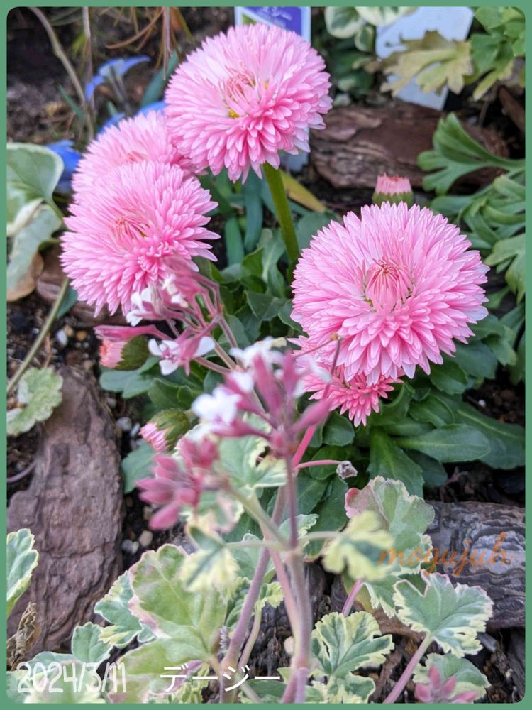 横浜市青葉区内、近所にて。ピンク色のデイジー
