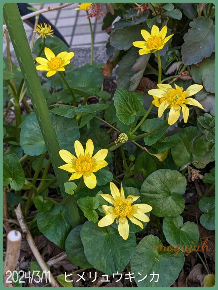 横浜市青葉区内、近所にて。黄色のヒメリュウキンカ