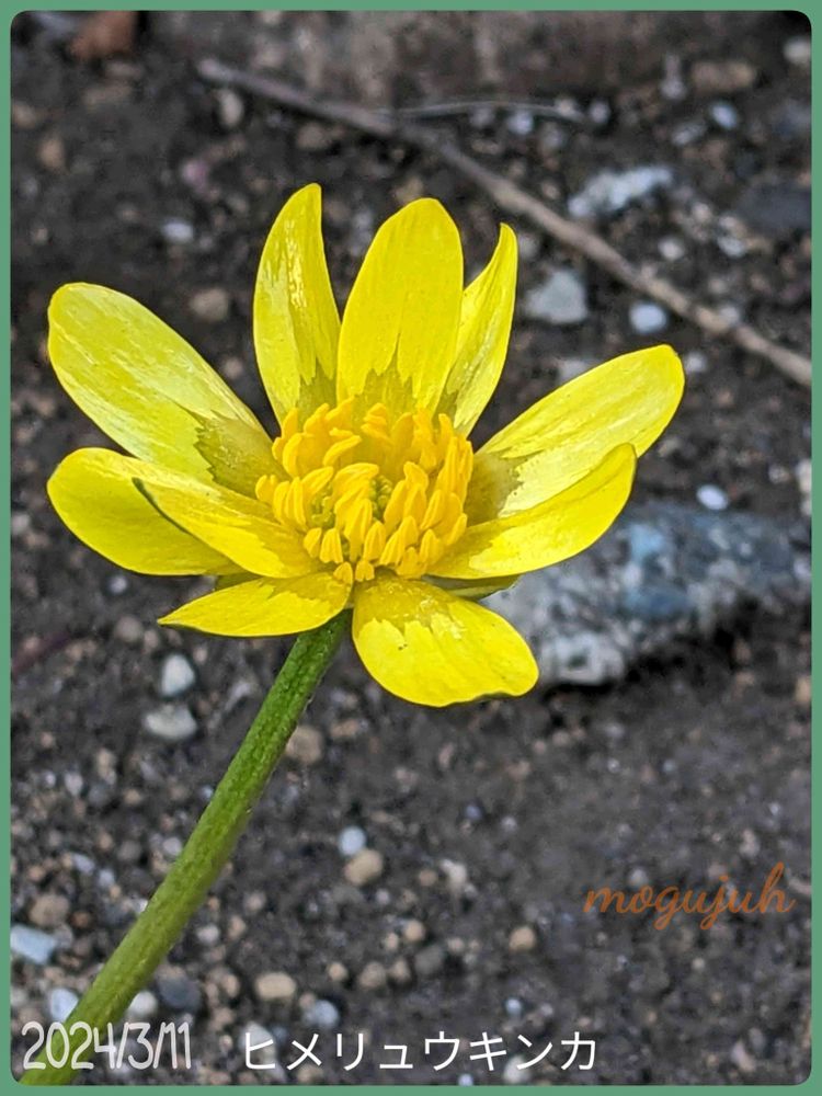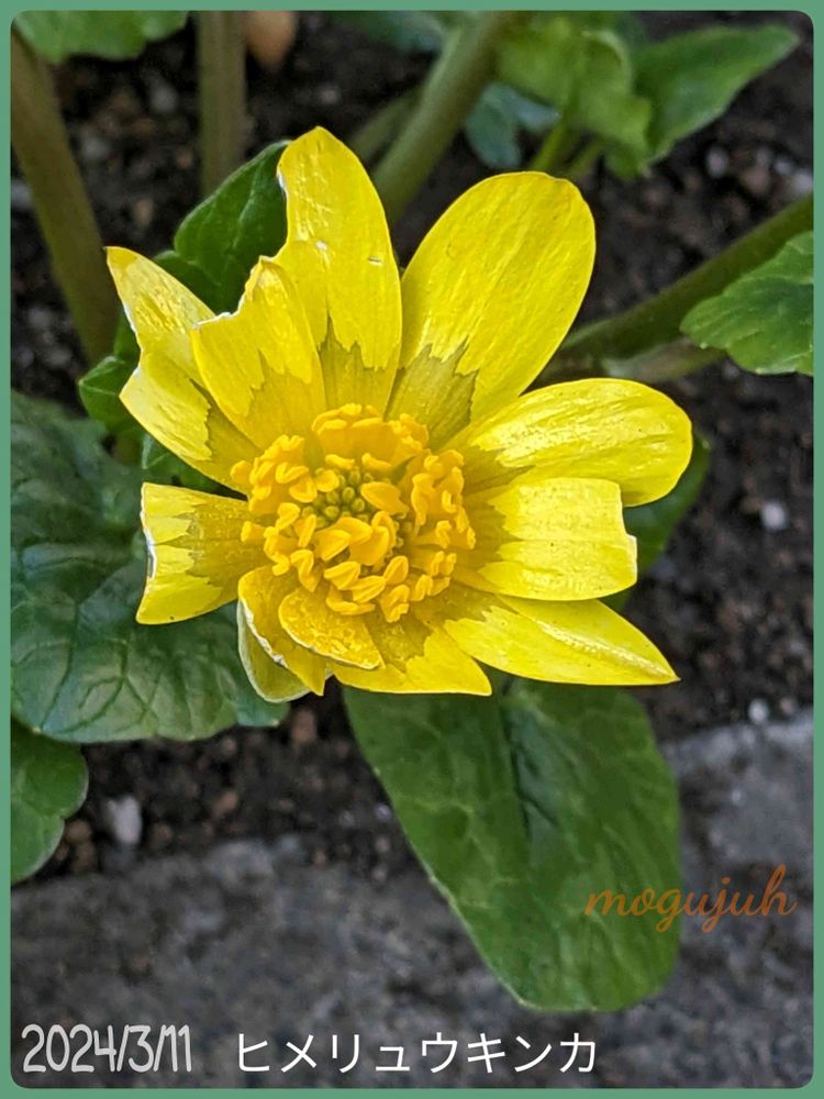 横浜市青葉区内、近所にて。黄色のヒメリュウキンカ