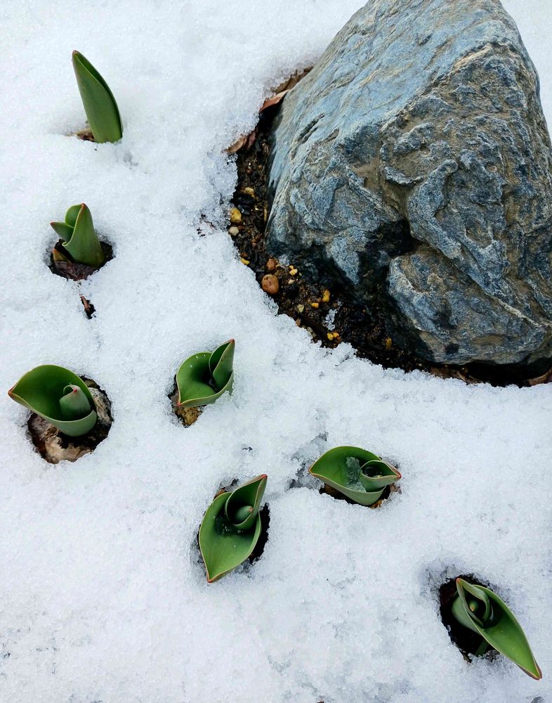 雪の中からチューリップ🌷って嬉しいですね😍💕
