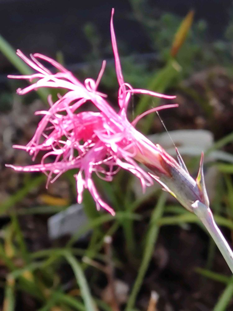 普通のなでしこと比べると糸みたいに細い花びらです。白い花もあります💗
