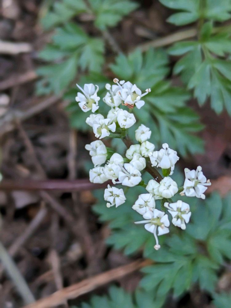 春を告げるお花の一つ「セントウソウ」(仙洞草)。 他の花より一番早く咲くから『先頭』という意味の名がついた という説もあるとのこと。