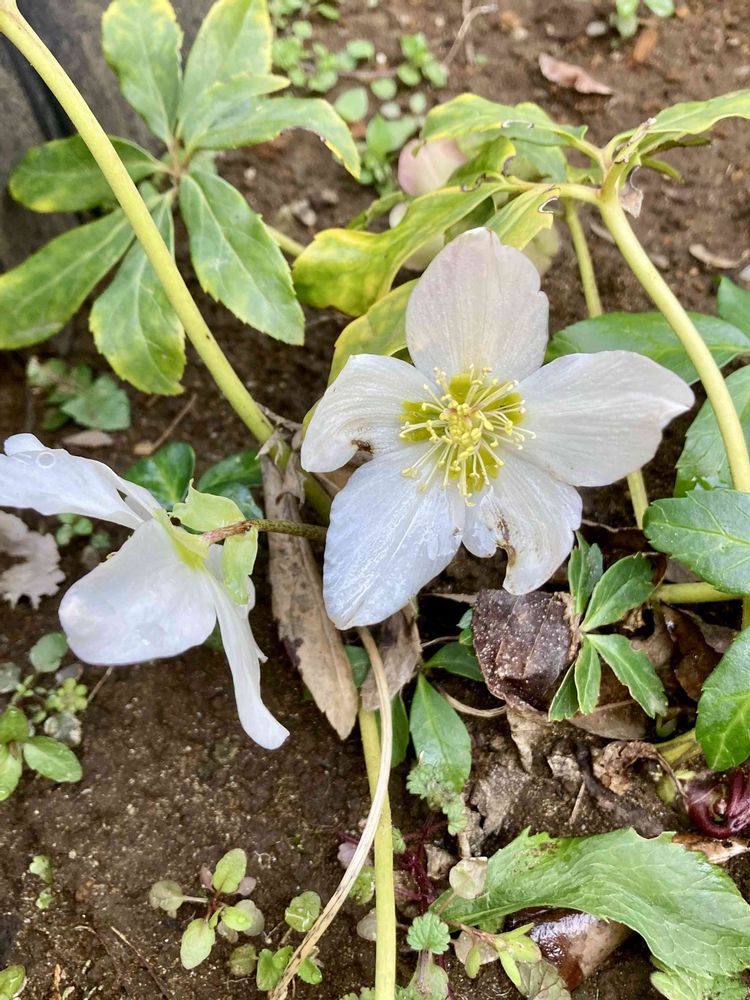 クリスマスローズ、凄い下向き⤵️で、地面スレスレで、上手く撮れるかしら🤳ಠ_ಠ