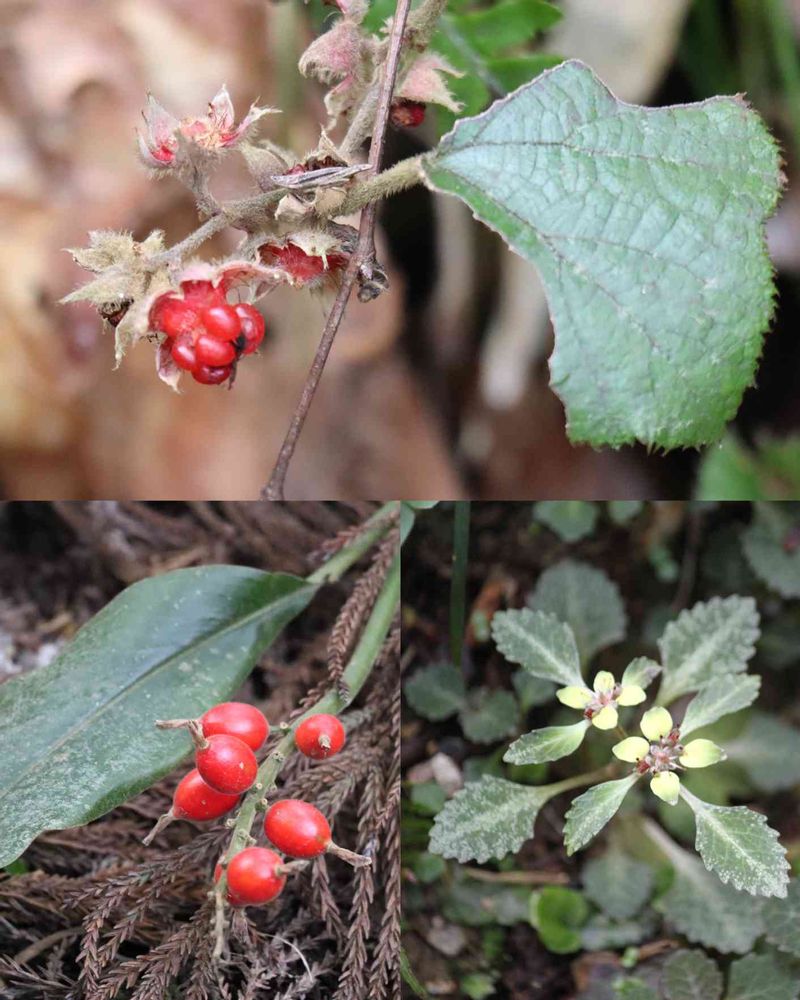 森林公園散策で出会えた真っ赤な冬苺の実🔴と花茗荷の実🔴