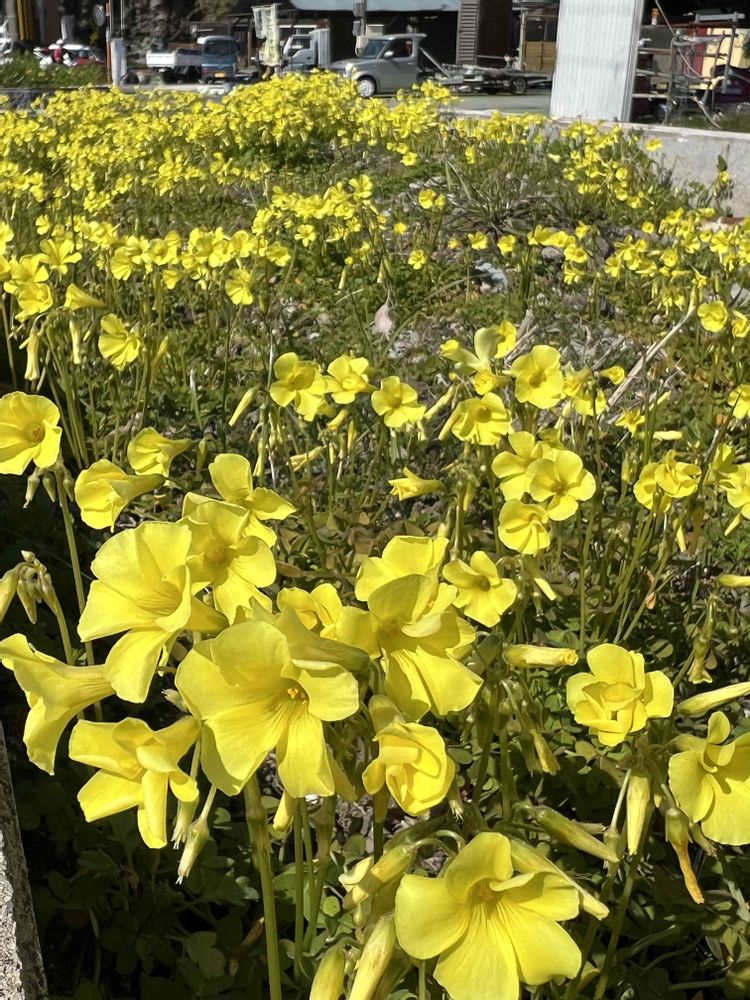 町のお花といっていいくらいオオキバナカタバミがあちらこちらでひらめいていました。