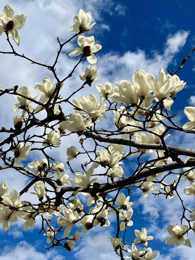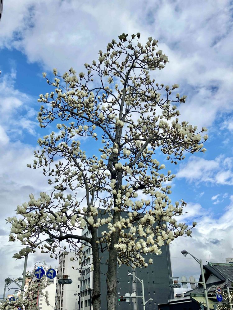 街路樹のハクモクレンはどれも満開でした。😁