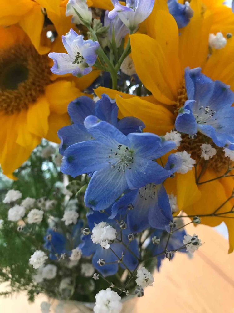 買った花束に入っていた青い花の名前が分かりません。どなたか教えてください!