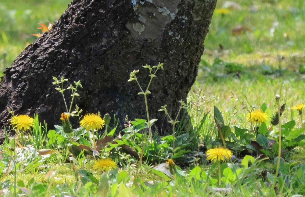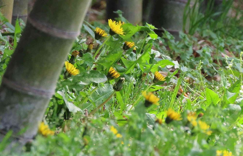 竹林の中のたんぽぽ