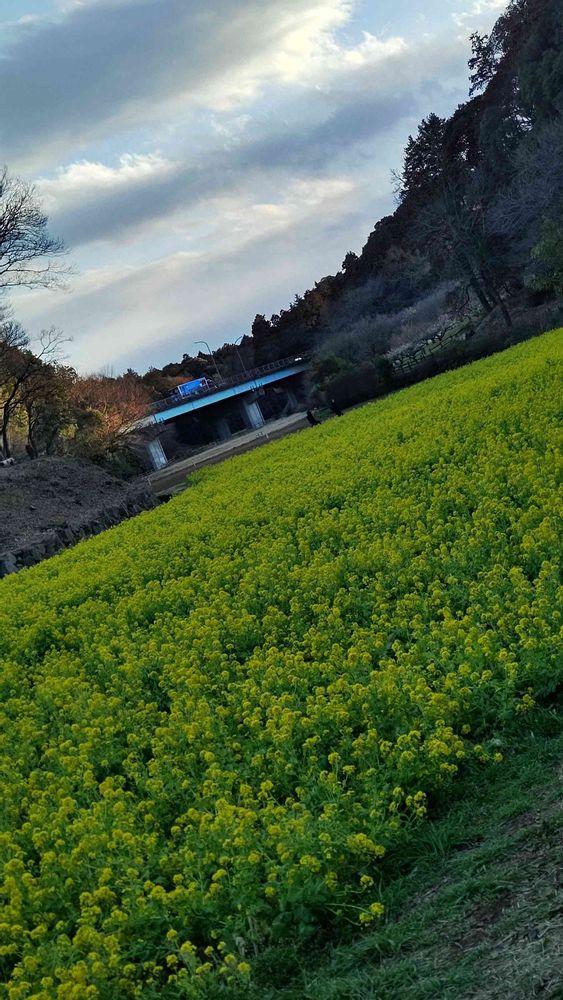菜の花畑💚💛奥に、中原街道が見えます❗️
