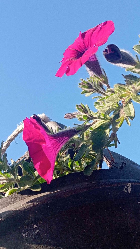 4️⃣5️⃣サフィニア パープル 外の軒下で今年で3年目 挿し木してからは5年目になるのかな〜 12月に切り戻してほったらかし 伸び始めた枝にツボミはびっしりだけど 土が減ったから切り戻して植え替えしようかな と思っています❤️🎵