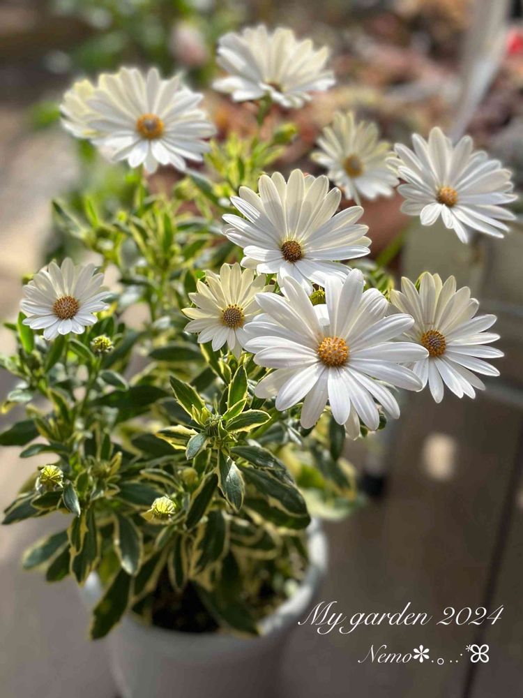 ネモさんのオステオスペルマム ザイール バリエガータ,花のある暮らし,白いお花の投稿画像