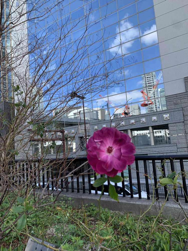 ①昨日に続き、大阪中之島美術館で開催されている印象派を代表するフランスの画家クロード モネの展覧会へ行く遊歩道で1輪の薔薇が咲いていました🩷