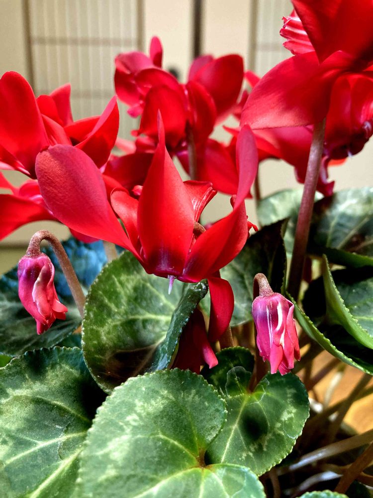 シクラメンは冬の花と思っているのに春になっても蕾はどんどん付くし開花するし、どうなっているの?😅