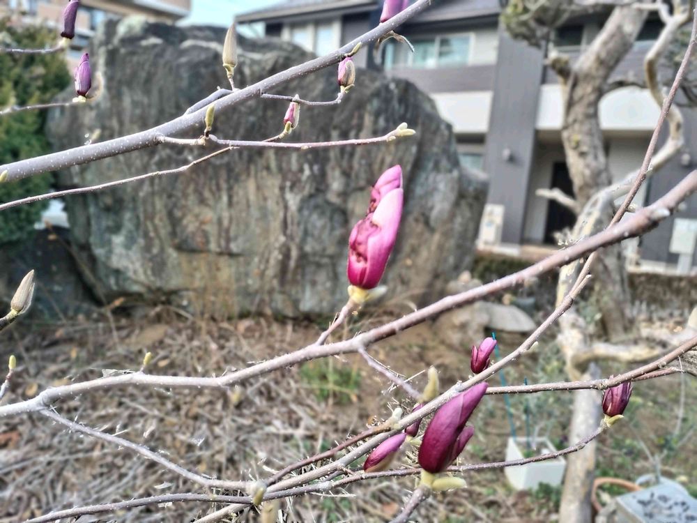 シモクレンが一気に蕾から花へ早春の花便りを届けてくれました。