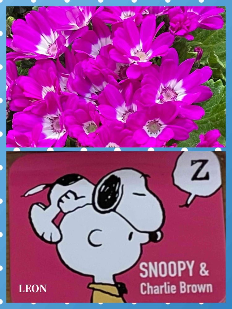 SNOOPYとサイネリアちゃん色もばっちり合っていますね😄🍹🌼🥇🪂