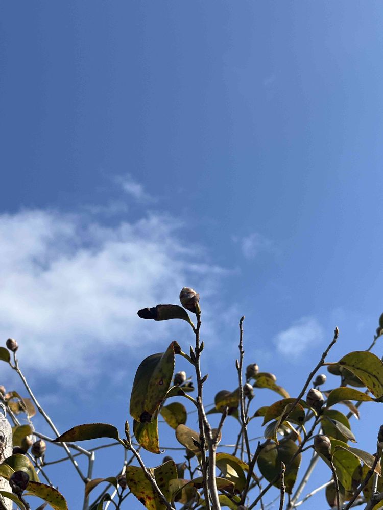 ずぶたさんのブルーベリーの 花,ホワイトデーの青空&大島椿の蕾,ホワイトデーの青空&大島椿の蕾の投稿画像