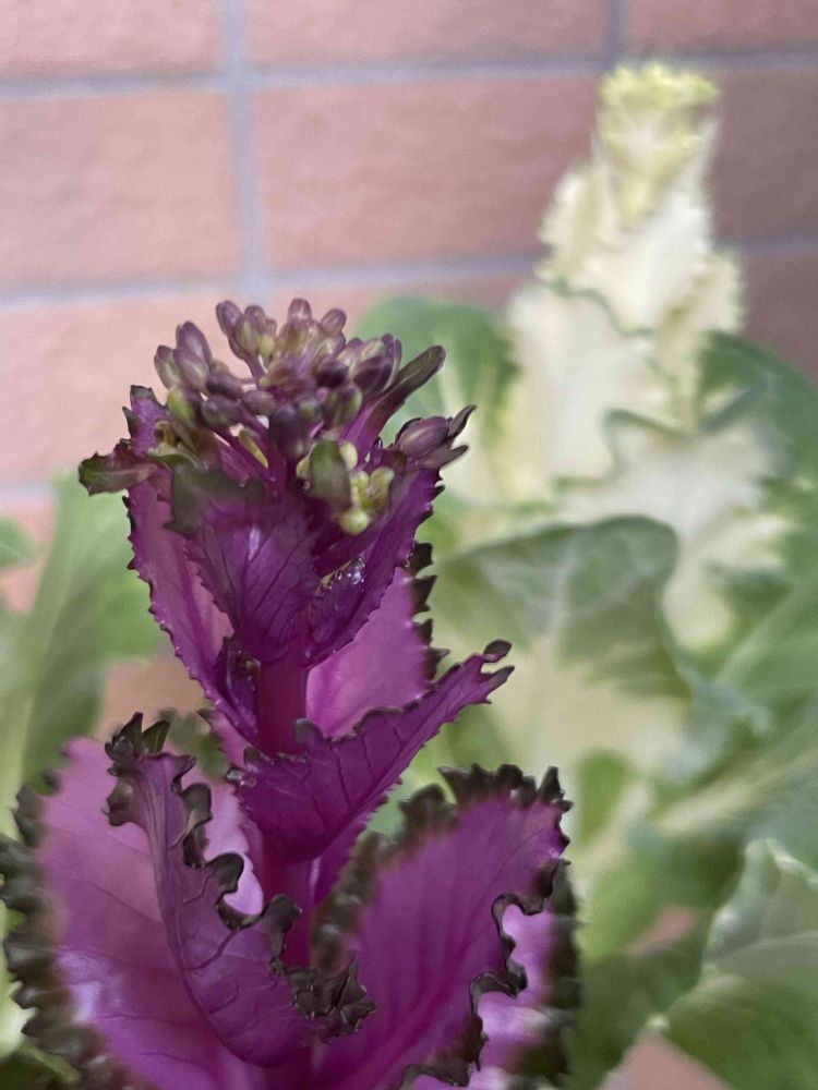玄関置きの葉ボタンが育ってます❣️