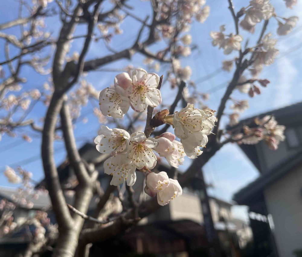 庭のお手入れで気づきました💦庭の裏側のさくらんぼの花が咲いていました😊